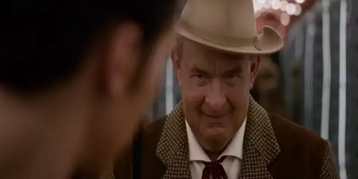Una escena especialmente angustiosa de la película de Elvis se produce cuando el Coronel Parker negocia un contrato de cinco años con el Hotel Internacional sin que Elvis lo sepa. El público ve cómo el picapleitos de la feria intercambia los sueños de Elvis de una gira mundial por la cancelación de sus propias deudas de juego.