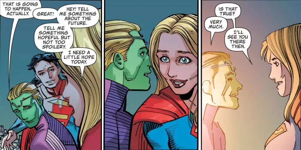 Cuando Supergirl llegó por primera vez durante el segundo reinicio de la Legión, estaba un poco perdida. No recordaba exactamente cuándo había dejado el siglo XXI. Supergirl seguía siendo muy amable, especialmente con la Legión que la acogía.