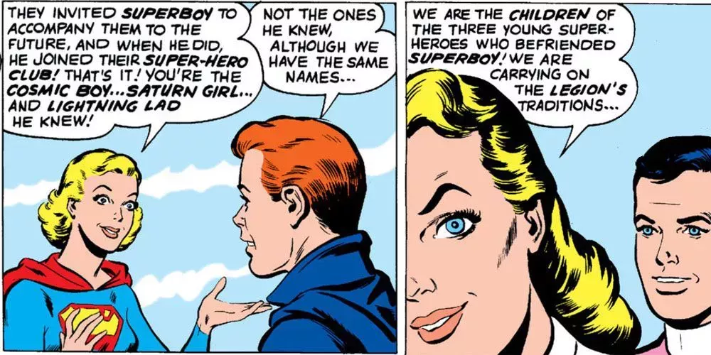 Superman le había contado a su primo que se había unido a la Legión cuando era un adolescente. Estos Legionarios no eran los mismos, sino los hijos de los tres Legionarios originales. Este detalle se olvidó pronto cuando los creadores decidieron que Superboy y Supergirl estuvieran juntos en la Legión.