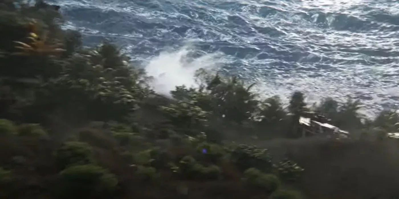 Después de que el presunto meteorito golpee la Tierra, el cataclismo resultante es insondable. Aunque esta secuencia indica la presencia humana por las estructuras hechas por el hombre que son demolidas por la ola del tamaño del día del juicio final, podría ser un evento antiguo.