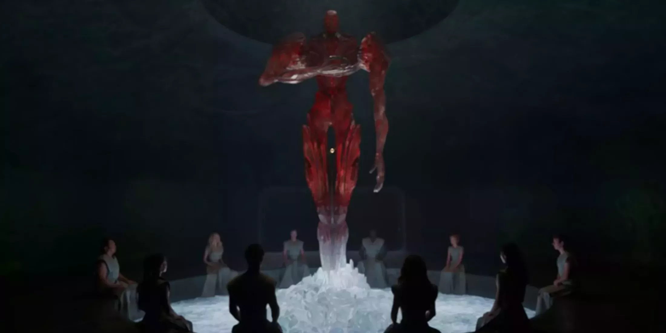 El montaje del tráiler sugiere que la respuesta a la pregunta de Whitman sobre quién dirigió a los Eternos para que se mantuvieran al margen de los asuntos humanos es los Celestiales. Justo después de hacer la pregunta, se muestra a los fans un primer plano del poderoso Arishem. Sin embargo, antes de eso, se muestra esta secuencia de los Eternos sentados alrededor de una posible proyección del Celestial.