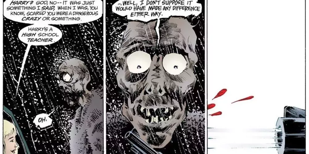 Una cosa que se olvida fácilmente de los primeros días de The Sandman es que es un cómic de terror. Con el paso de los años se convertiría en algo completamente diferente, pero originalmente se aprovechó del éxito de La cosa del pantano de Alan Moore . Se trataba de un cómic de terror inteligente y, como tal, el arte de los artistas Sam Keith y Mike Dringenberg, junto con el entintador Malcolm Jones III y el colorista Robbie Busch, se ajustaba al tono.