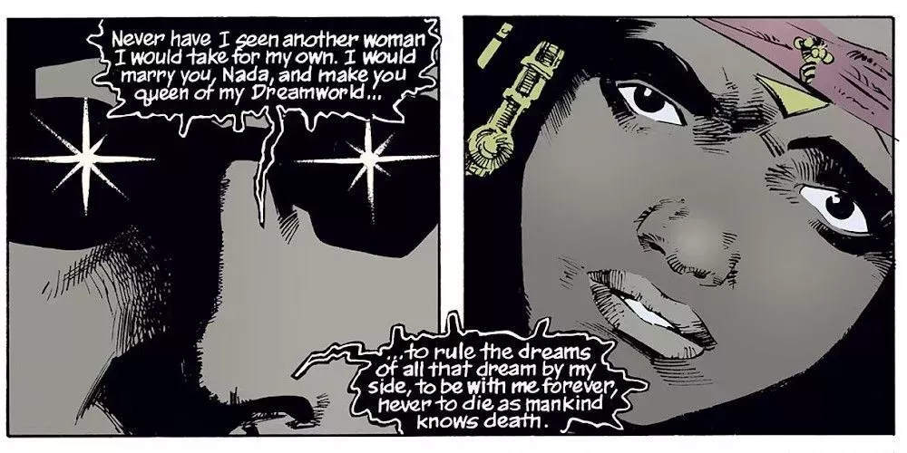 The Sandmanes conocido por sus increíbles historias puntuales. Un primer ejemplo de ello es el número 9 de The Sandman, titulado "Tales In The Sand". El número cuenta la historia de la condenada relación amorosa entre Sueño y Nada, al tiempo que insinúa que Deseo tuvo algo que ver con toda la situación. Es un brillante primer número del cómic.