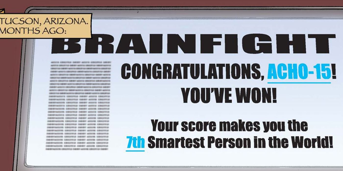 Tristemente, el Increíble Hércules #137 también demostró que la prueba era un ardid. Era una prueba real, y era para averiguar quién en el mundo era considerado un súper genio, pero un loco financió la prueba. Este hombre era Pitágoras Dupree, quien afirmaba ser el sexto hombre más inteligente del mundo.
