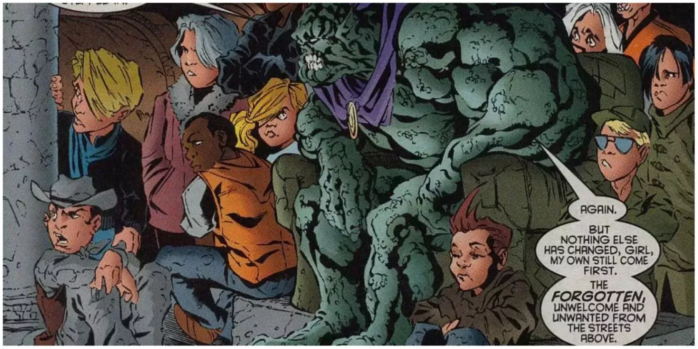Los refugiados se encuentran en un conflicto entre un grupo de indigentes y la policía de Nueva York cuando Abominación aparece de repente desde el subsuelo, recibiendo una atronadora ovación cuando empieza a ayudar a alejar a la policía. Aunque esto no transformó de repente a Abominación en una especie de antihéroe, este periodo de su vida fue notablemente heroico.
