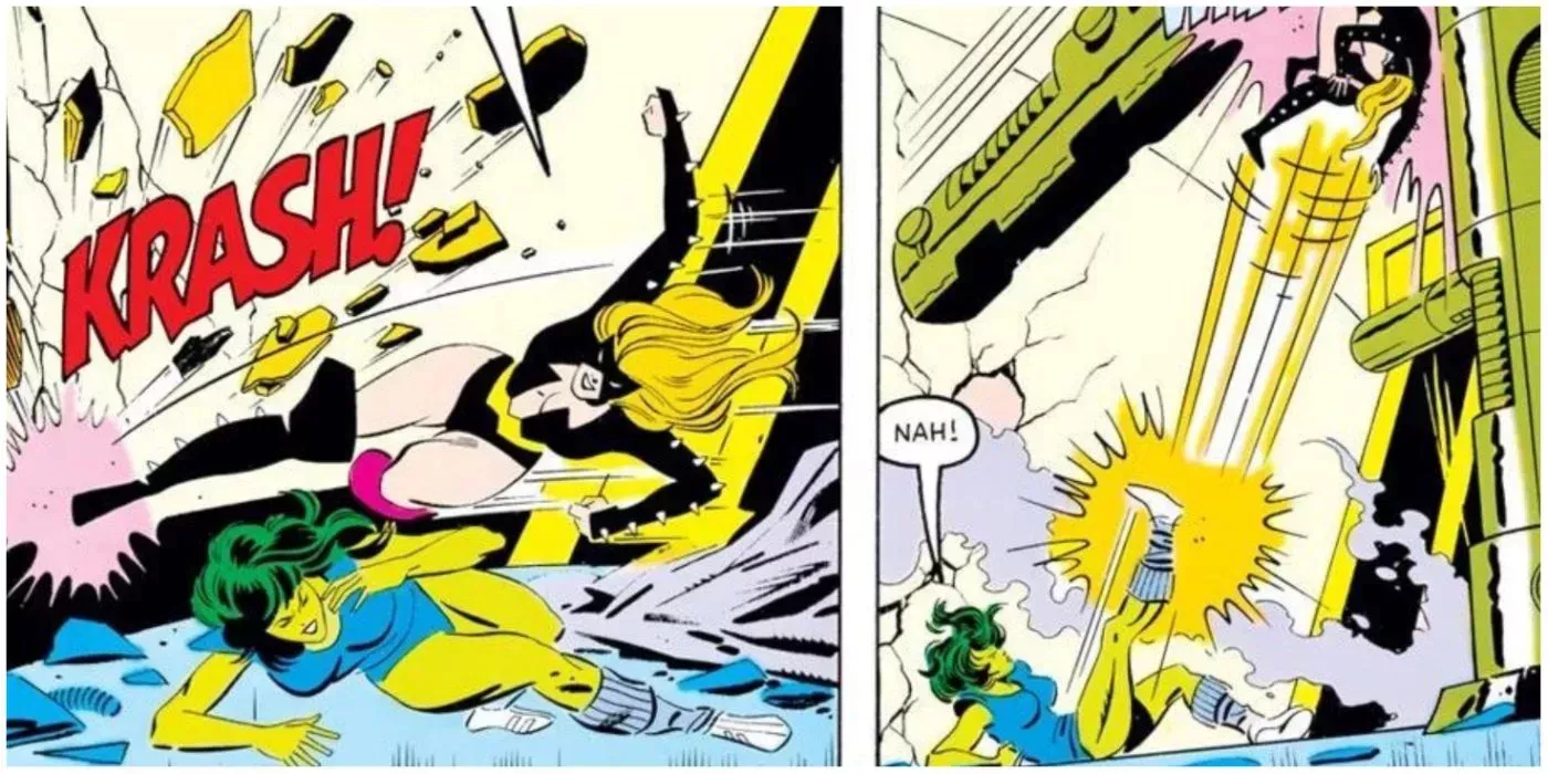 Titania, la heroína que más tarde se convertiría en su rival, conoció a She-Hulk por primera vez en Marvel Super Heroes Secret Wars #7 de Jim Shooter y Mike Zeck. En la historia, Titania salta sobre She-Hulk y la ataca tras notar cómo ha derrotado a la mayoría de sus aliados.