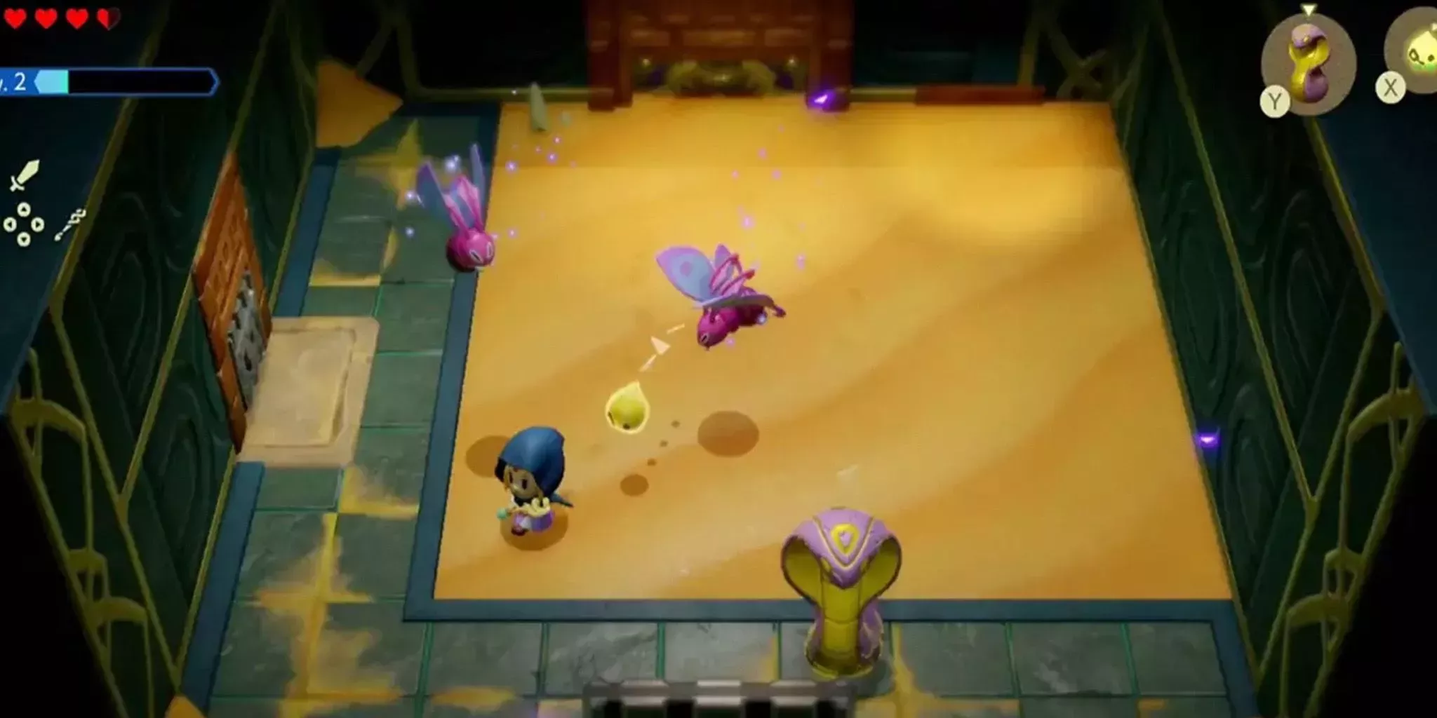 Las mazmorras de Echoes of Wisdom siguen la tradición de los Zeldas clásicos en 2D, con atmósferas impresionantes, puzles desafiantes y emocionantes batallas contra jefes finales.