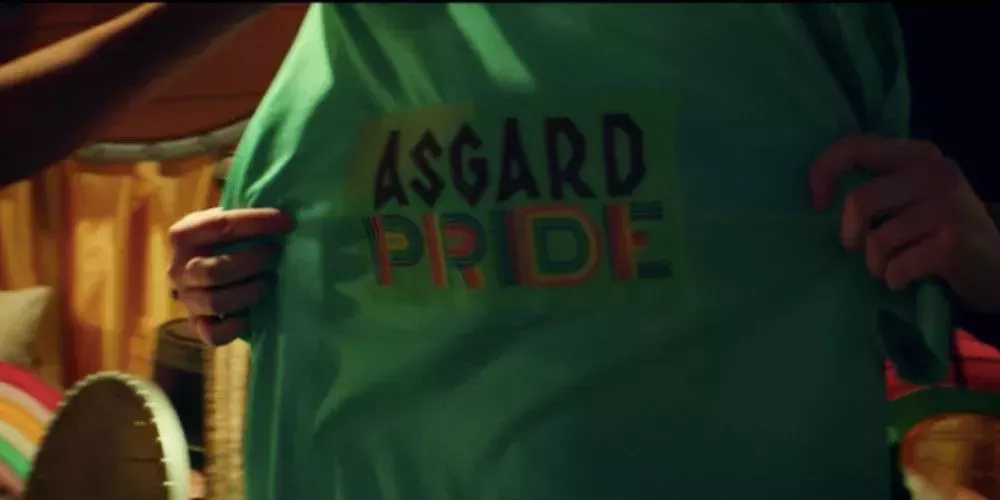 Aunque esto sólo podría ser un guiño a Asgard como ciudad, los detalles del arco iris en la palabra "orgullo" hacen que esta escena sea sospechosamente queer. Esto es perfectamente comprensible si tenemos en cuenta que Valquiria, la reina de Asgard, es uno de los personajes LGBTQ+ más famosos de Marvel.