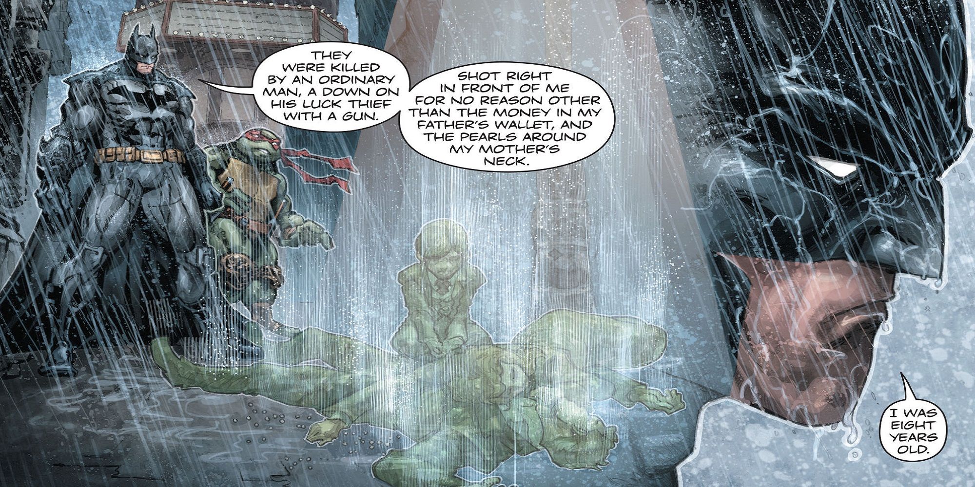 Para ayudar a devolver a Rafael a su causa, Batman decidió llevarlo al callejón donde murieron sus padres y explicarle su propio origen. Al darse cuenta de lo que Bruce estaba luchando, Raph se disculpó y los dos fueron capaces de trabajar juntos.