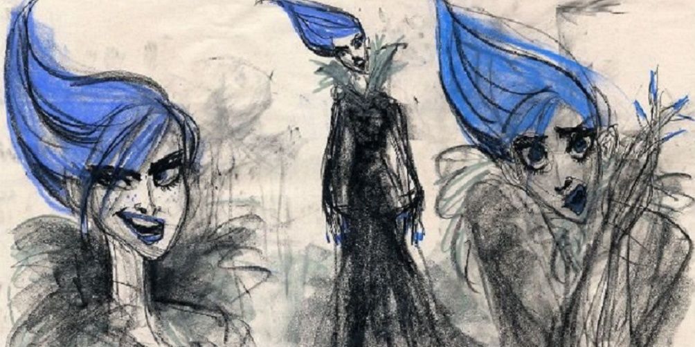 Las villanas de Disney tienen un aspecto determinado, y no es el de ojos luminosos y preciosas trenzas. Cuando los animadores diseñaron a Elsa como villana, pasaron por numerosos motivos. El pelo como una llama azul y las uñas como garras de hielo componían un look. Otro llevaba un cuello alto y oscuro que recordaba a la reina Grimhilde de Blancanieves. En algunas versiones su piel era azul, y llevaba una inmensa corona de copos de nieve y un abrigo de armiños vivos.