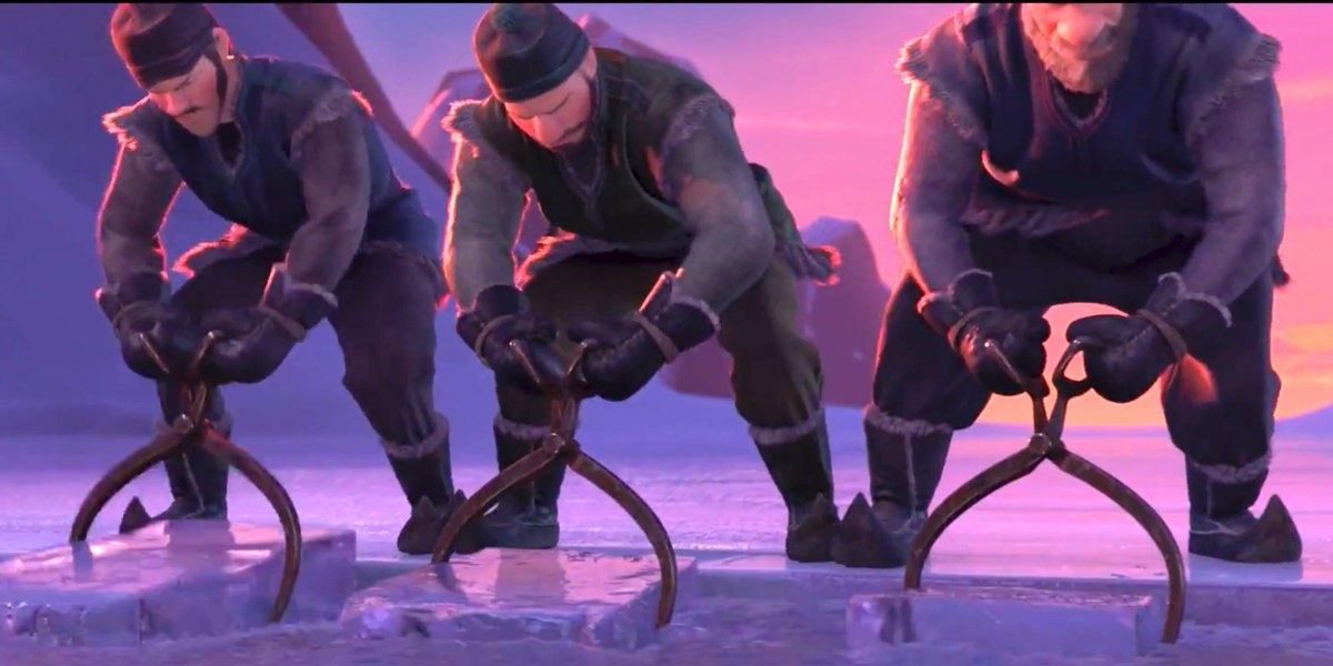 Una canción de trabajo de los recolectores de hielo, "The Frozen Heart", abre la película. Sus voces cantadas recuerdan a una canción de marineros, pero la letra es siniestra y presagia claramente la presencia amenazante de Elsa.