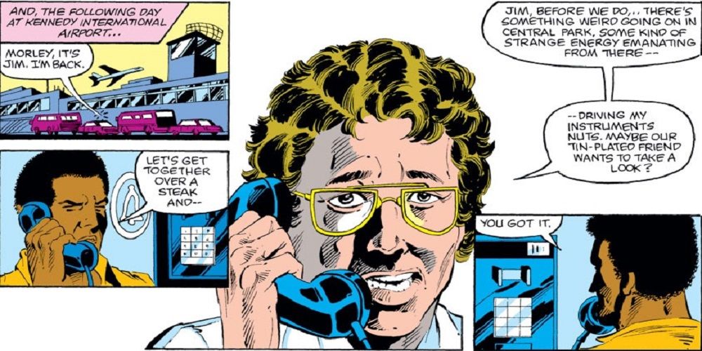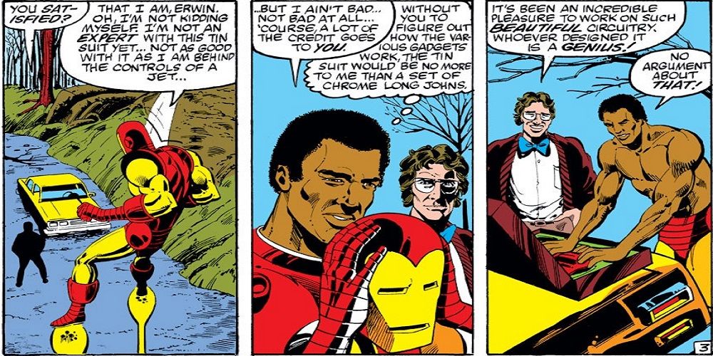 Después de casi ser golpeado por un villano aficionado, Rhodey se da cuenta que necesita dominar la armadura rápidamente. Así que el asunto después de recibir la armadura, comienza a trabajar con un científico llamado Morley Erwin. Morley se toma un poco de tiempo para averiguar cómo funciona el traje y, junto con Rhodes, es capaz de averiguar lo suficiente de lo que hay en el traje para hacer que pilotearlo y usarlo como un superhéroe sea una posibilidad.