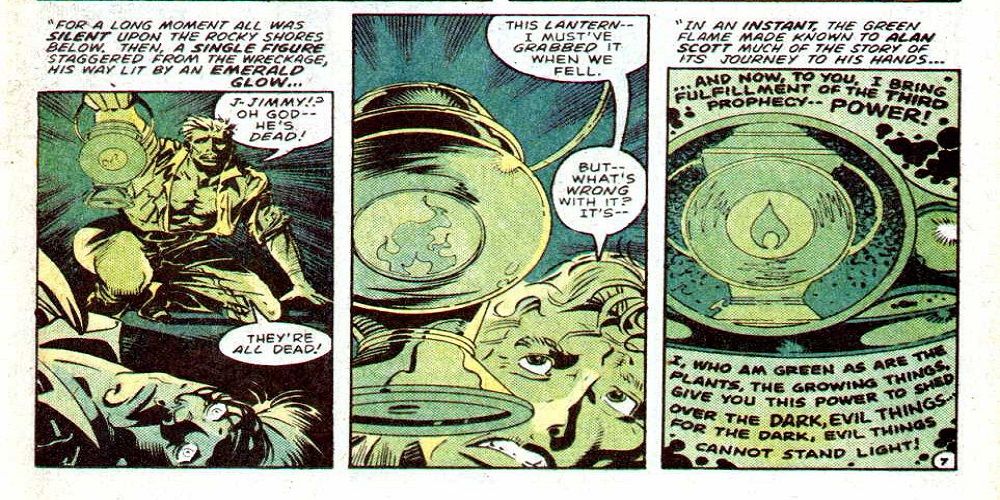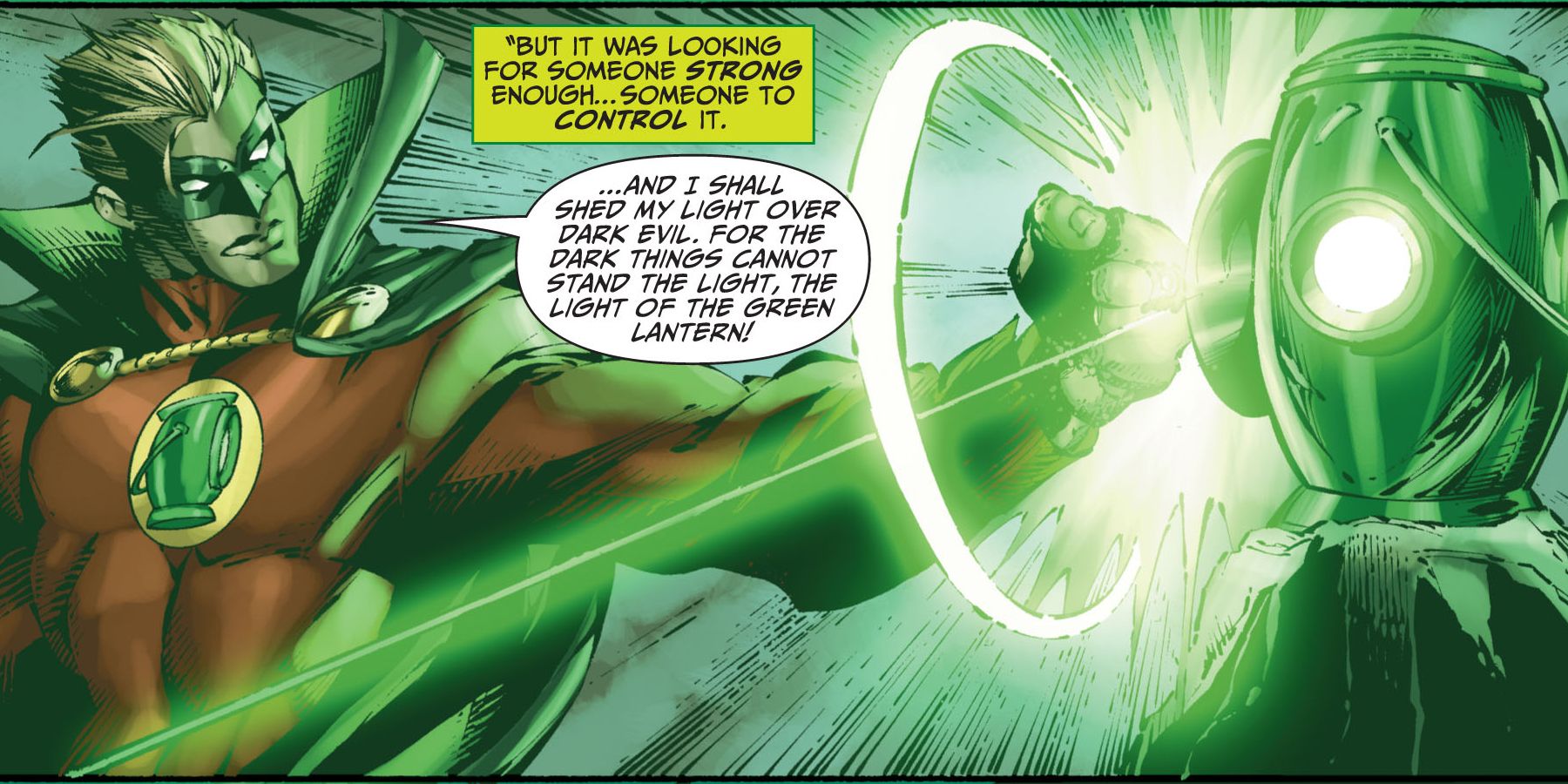 Vale la pena preguntar exactamente de dónde saca Alan Scott sus poderes. Los otros Linternas Verdes obtienen sus poderes aprovechando la fuerza de voluntad colectiva del universo y usándola como energía. Alan Scott obtiene sus poderes de su Linterna, que por supuesto fue una vez el cometa que fue representado como una Llama Verde. Esa Llama Verde viene del Corazón de Estrella, que incluso ha parecido sensible.
