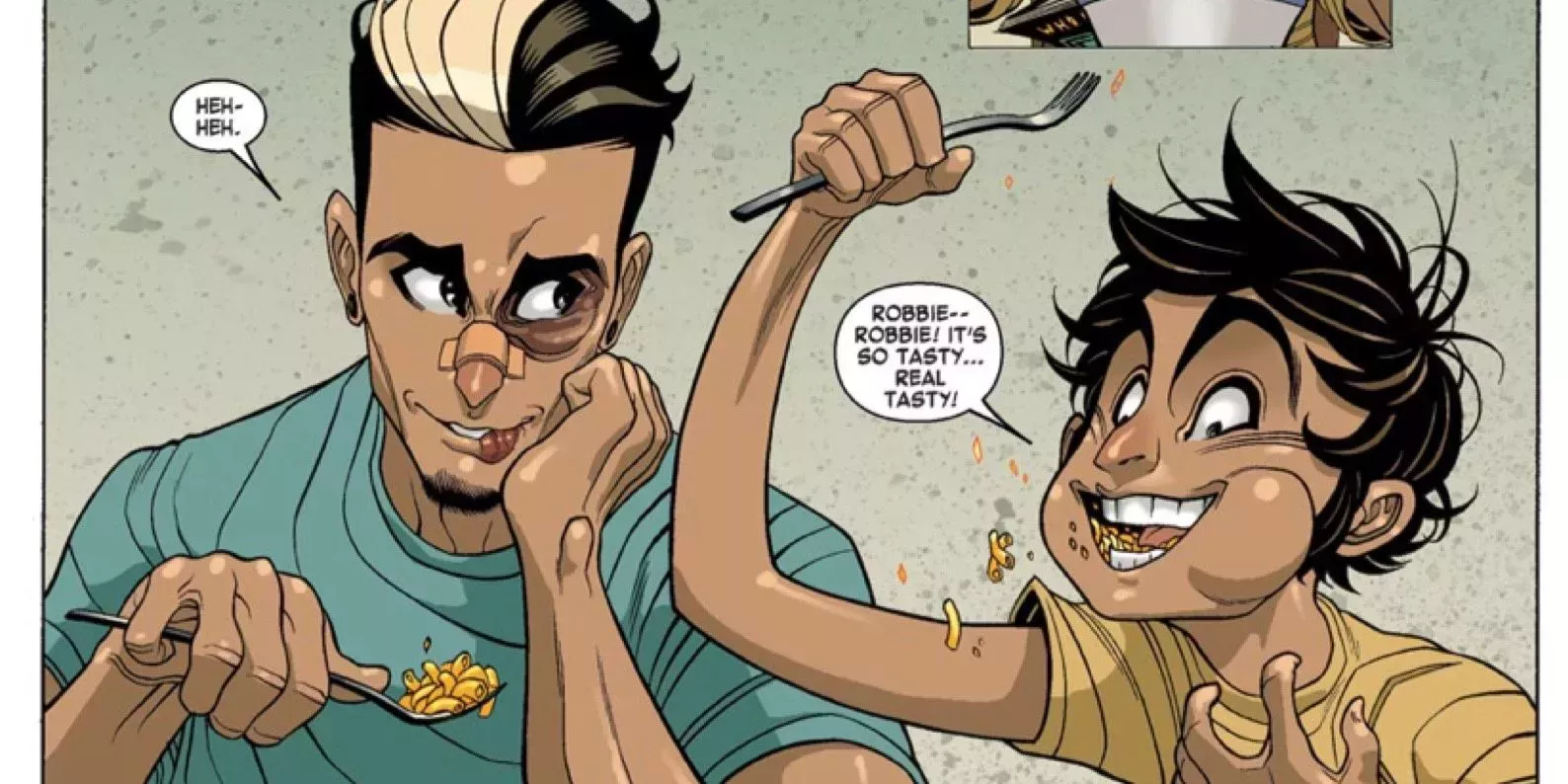 Gabe lo es todo para Robbie. Toda su vida gira en torno al cuidado de Gabe, desde su trabajo hasta su vida de superhéroe. Ya sea en los libros o en las calles, Robbie lo hace todo para que Gabe tenga una oportunidad de llevar una vida normal. Con la discapacidad de Gabe, Robbie se asegura de que tengan suficiente dinero para el consuelo y la medicación. Incluso cuando el Motorista Fantasma se unió a los Vengadores, sus pensamientos siempre se dirigieron a su hermano pequeño y a cómo salvar el mundo significa que también está protegiendo a Gabe. Aunque no es perfecto, Robbie hace todo lo posible por ser el hermano mayor que Gabe necesita en su vida.
