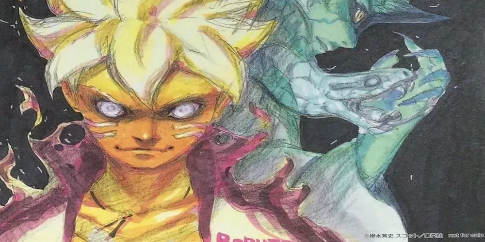 La capa de chakra que Boruto tiene en ilustraciones anteriores también se parece al modo de chakra de las Nueve Colas. Dado que Kurama ya no está y que la familia Uzumaki ya no tiene conexiones con los Jinchuriki, esta versión de Boruto no es canónicamente posible, por lo que es una delicia verla ilustrada por el propio Kishimoto.