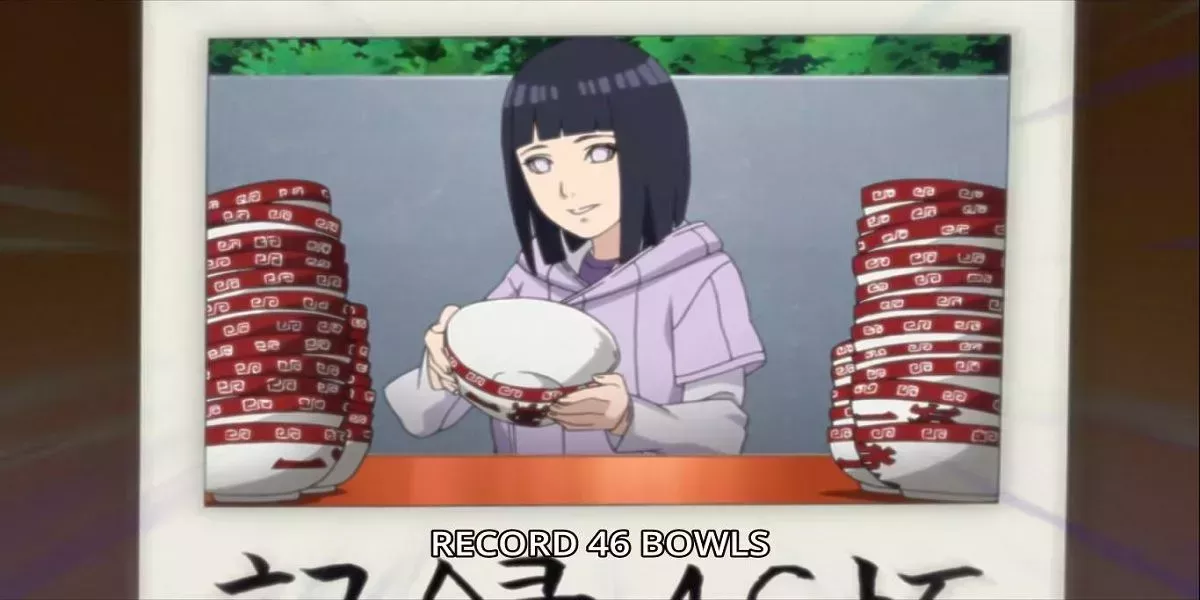 Naruto siempre ha sido un apasionado del ramen, y esta pasión sólo crece después de que se convierte en una de las principales formas en que se une a Iruka. Sin embargo, se revela que Hinata tiene el récord de comer la mayor cantidad de ramen de una sola vez, con un impresionante récord de cuarenta y seis tazones.