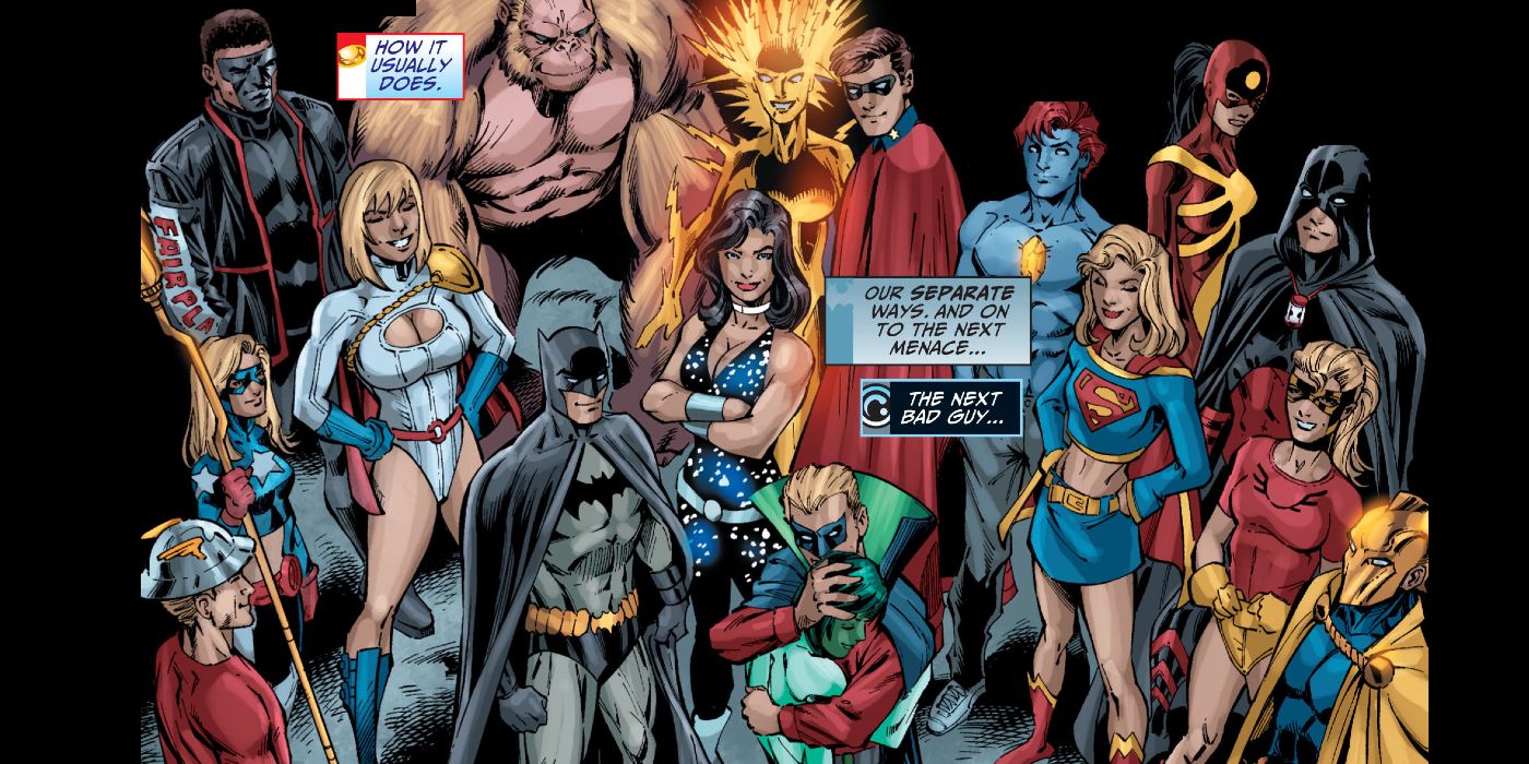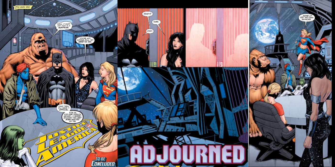Donna buscaba volver a su identidad civil, Supergirl seguía recuperándose, Congorilla necesitaba cumplir su promesa a Bestia de la Libertad, Jade se dirigía a la luna para ayudar a su padre a reconstruir la Ciudad Esmeralda, Jessie Quick se quedaba embarazada y Starman necesitaba curarse de su estancia en Gem World. La disolución de la JLA liderada por Nightwing se debió principalmente al evento Flashpoint y al relanzamiento de la línea con los Nuevos 52.