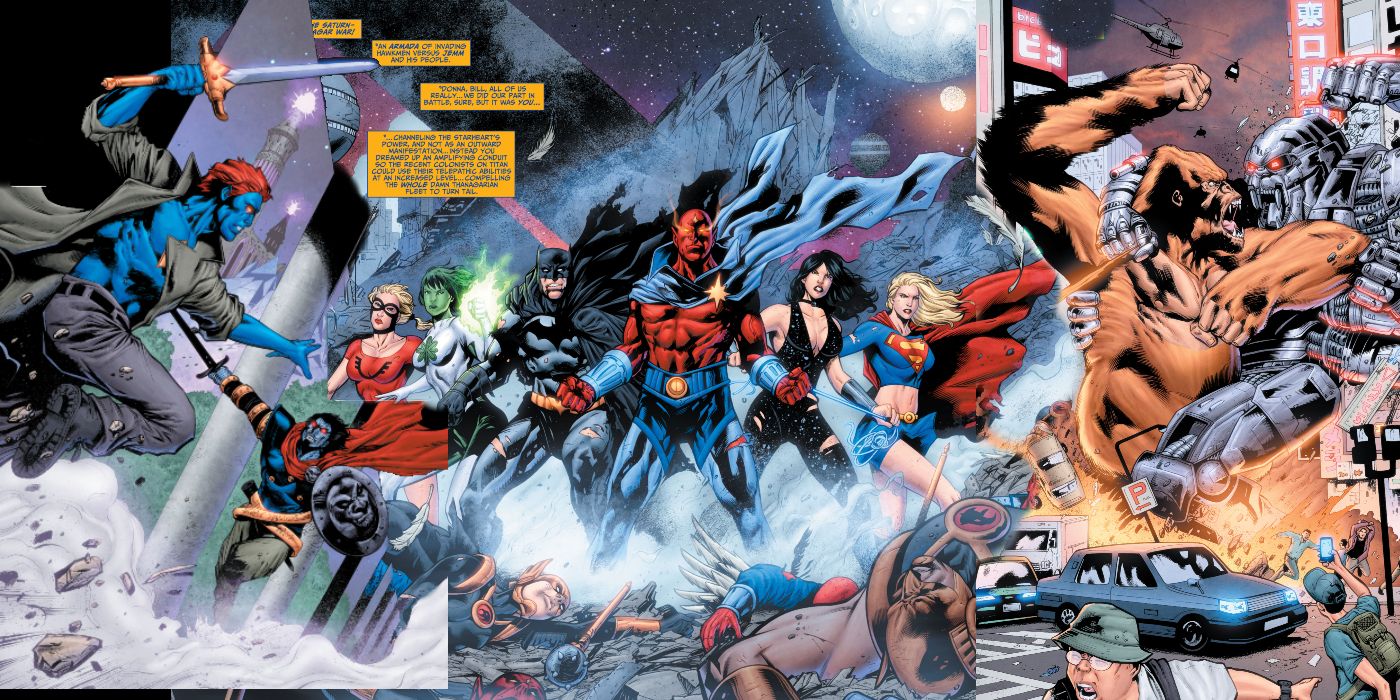 4 La Liga de la Justicia de Nightwing se cruzó con la Sociedad de la Justicia de América durante el Día Más Brillante y recogió algunos nuevos miembros