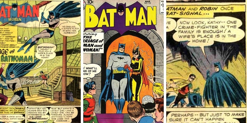 La realidad de su matrimonio, tal y como se nos muestra, estaba llena de malos tratos por parte de Batman a Batwoman. Un ejemplo especialmente vívido muestra a Batman diciéndole: "¡Un luchador contra el crimen en la familia es suficiente! El lugar de una esposa es el hogar". Aunque en realidad fueron pareja durante un tiempo, también se revela que este episodio es simplemente un sueño de Robin en el que muestra sus opiniones sobre el género, lo que no excusa la redacción.