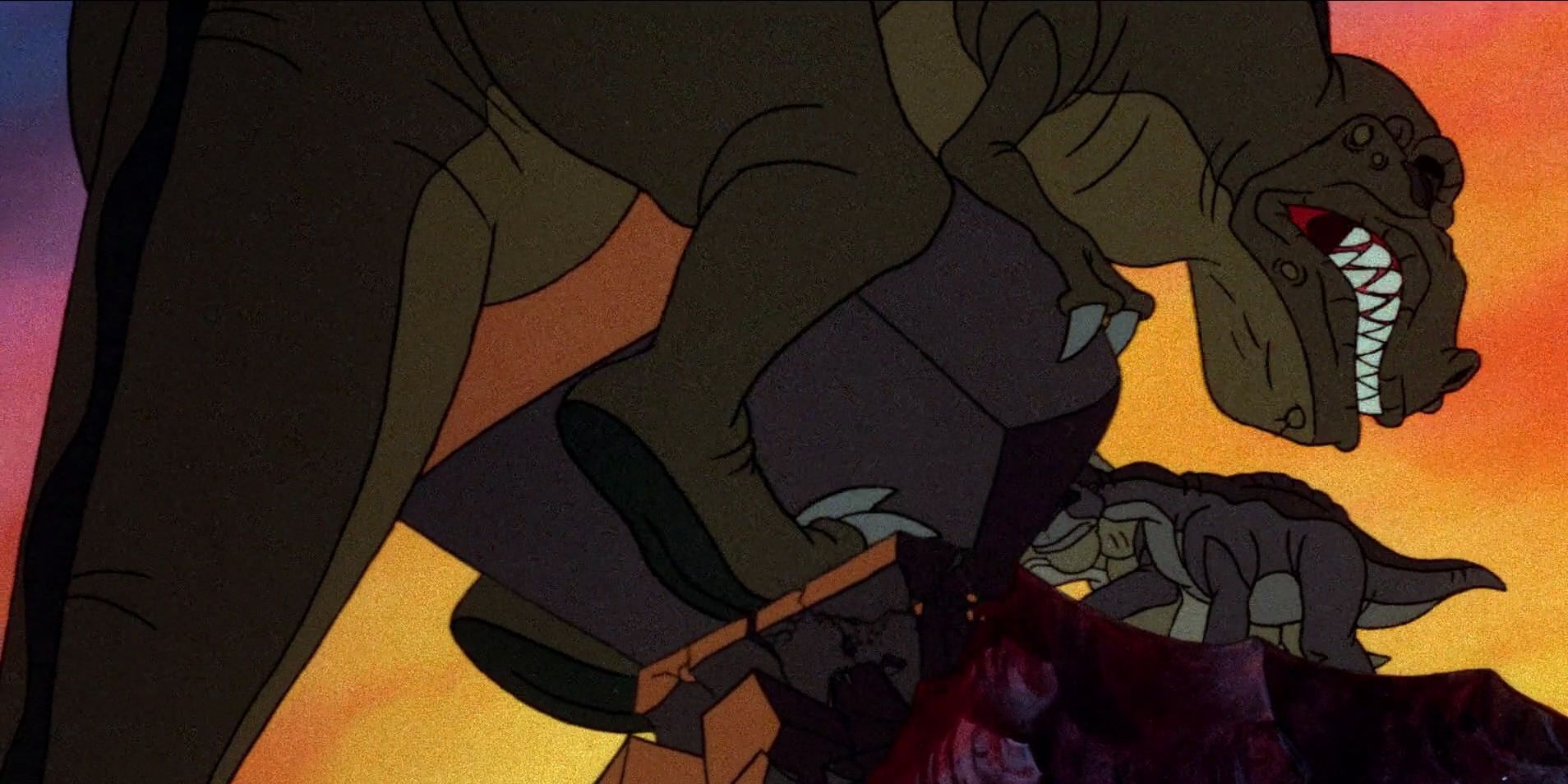 La Tierra Antes del Tiempo es una película notoriamente oscura con algunas secuencias de miedo. Y, sin embargo, se suponía que iba a ser aún más oscura, pero el montaje y el corte evitaron que la película fuera demasiado oscura para los espectadores más jóvenes.
