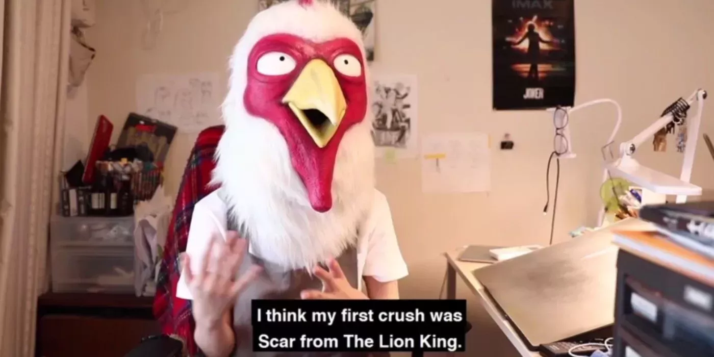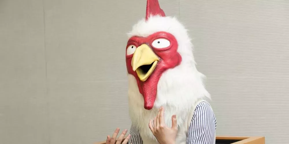 7 Paru Itagaki lleva una máscara de pollo para ocultar su rostro en público