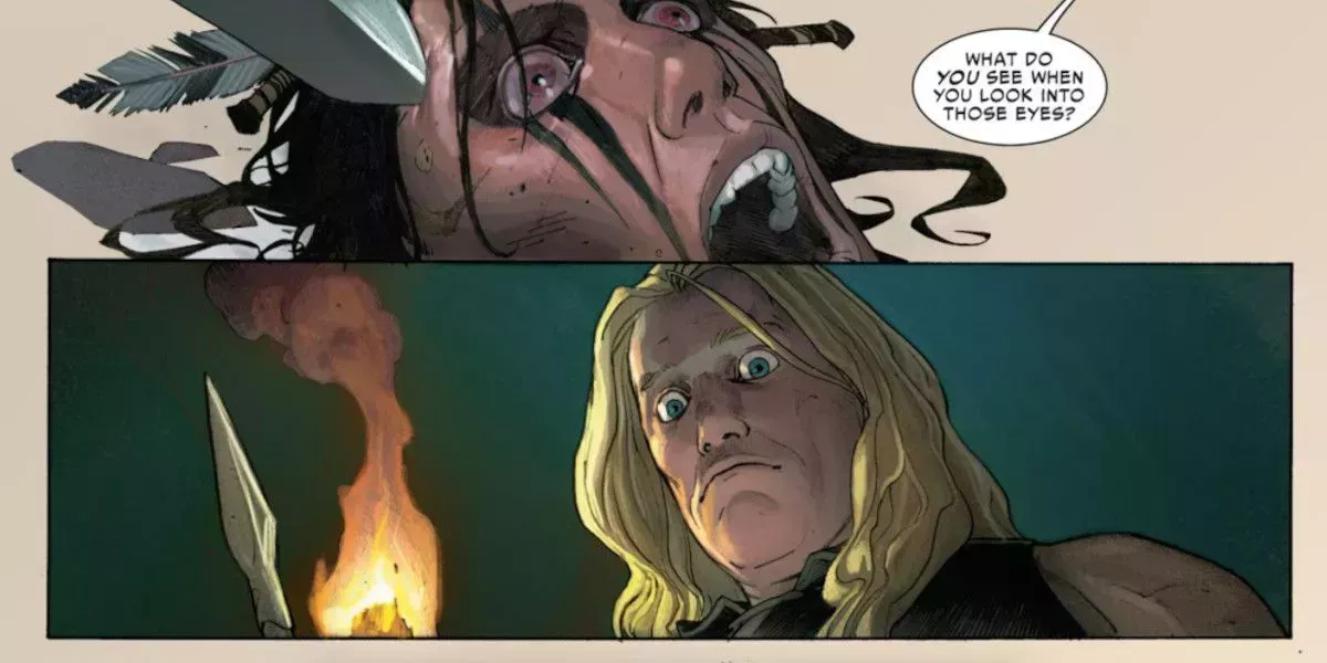 Aunque Jason Aaron y Esad Ribić se aseguraron de crear a Gorr como un villano sombrío y sediento de sangre, Marvel Studios lo ha debilitado en aras de una clasificación PG-13. Gorr sólo mata a un dios en pantalla, justo al principio de la película. En los cómics, no tiene ningún problema en crucificar a las deidades y mutilar a sus víctimas de las formas más espantosas. En definitiva, es mucho más siniestro que la versión del MCU.