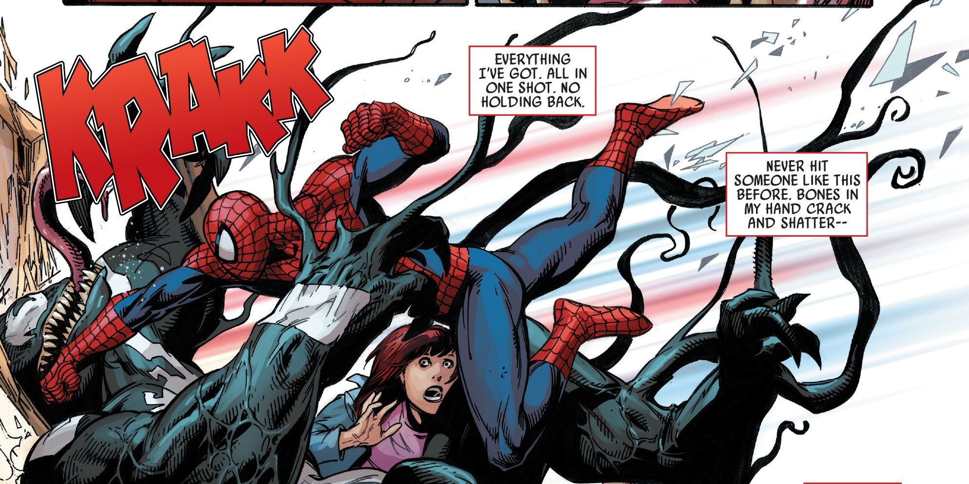 Hay una razón por la que el Hombre Araña fue uno de los pocos en evitar la ira del Regente. Al mismo tiempo que los Vengadores lucharon contra él, Veneno escapó de la prisión e inmediatamente fue tras María Juana y Annie. Naturalmente, Spiderman estaba lívido y decidido a detener a Veneno de una vez por todas. La intensa lucha de Spidey y Veneno terminó en un edificio en llamas donde Peter derribó el edificio matando esencialmente a Eddie Brock y al simbionte. Para cuando terminó, Regent había vencido a los Vengadores y Peter decidió que lo mejor era esconderse para proteger lo que más importaba: su familia.
