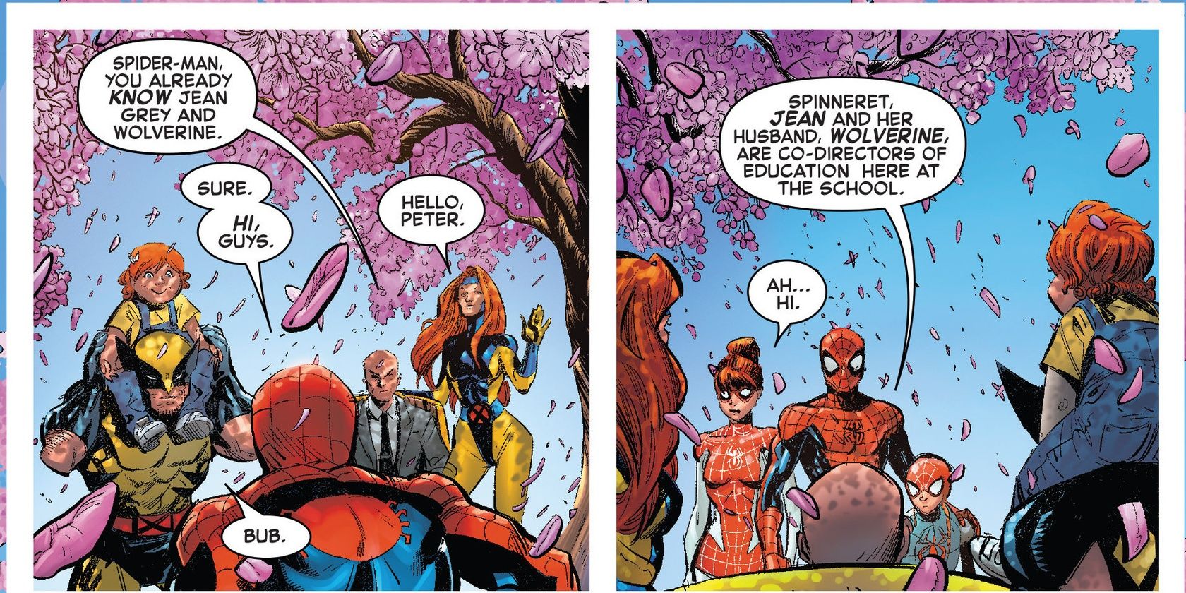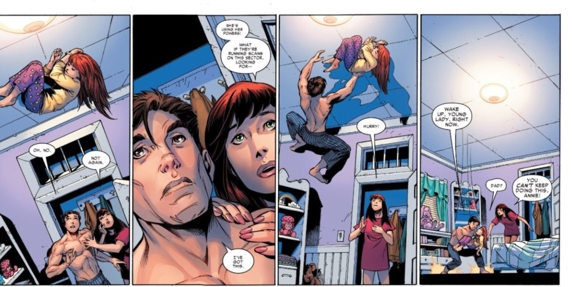 El Hombre Araña y María Juana no eran la única pareja que tenía un hijo con ojos brillantes. Después de la ruptura, Wolverine estuvo ahí para Jean Grey y comenzó una relación. Como dice el refrán, primero fue el amor, luego el matrimonio, y luego vino su preciosa niña Kate. Kate parece parecerse más a su madre que a su padre en cuanto a personalidad y tiene el poder de proyectar destellos de luz cegadores. Por eso se llama Shine. Es una lástima que la serie no le haya dado más tiempo a Logan y su nueva familia, pero al menos los lectores pudieron ver a Logan viviendo felizmente con una esposa y un hijo por una vez.