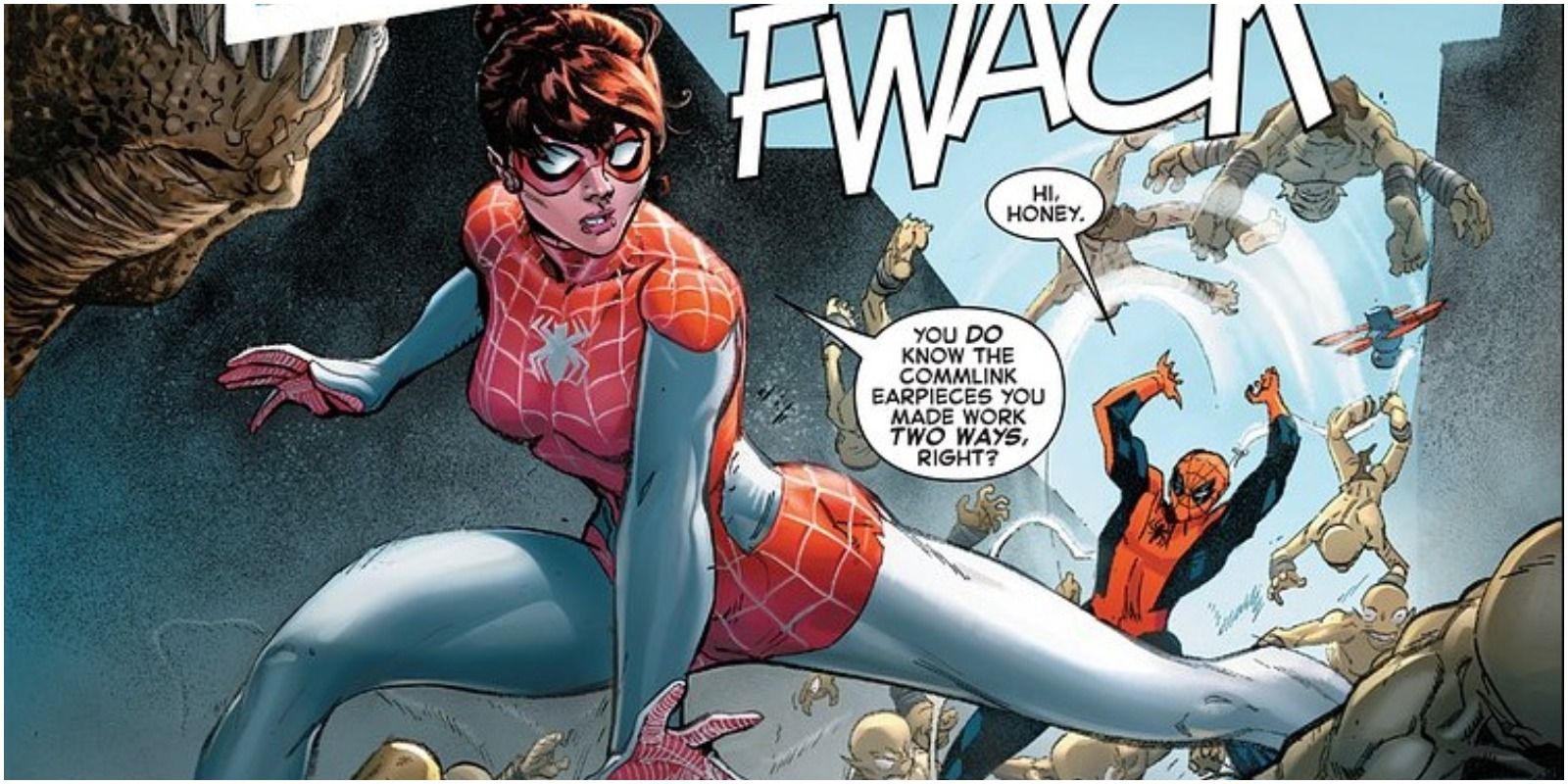 El Spider-verso es un lugar loco lleno de todo tipo de variaciones de Peter Parker. Eso incluye un universo en el que Peter y Mary Jane se casaron y formaron una familia con una niña saltarina llamada Anna-May o "Annie". Con el tiempo, la vida familiar de Spiderman se convirtió en su vida de lucha contra el crimen, ya que su esposa e hija se unieron a él como Spinneret y Spiderling.