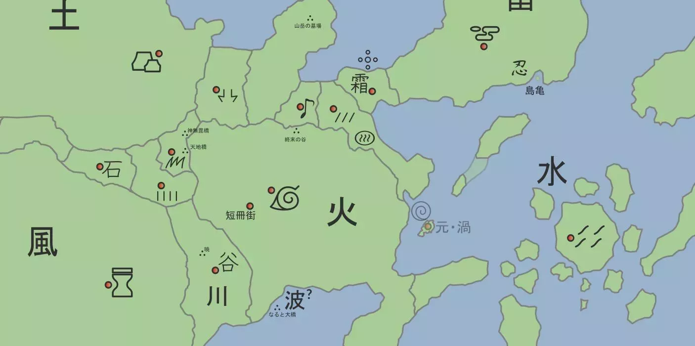 Los nombres de las distintas Aldeas Ocultas del mundo shinobi suelen estar relacionados con los países en los que se encuentran, como la "Niebla Oculta" en el País del Agua o la "Piedra Oculta" en el País de la Tierra. Irónicamente, la ubicación más sorprendente sería Konoha, en el País del Fuego.