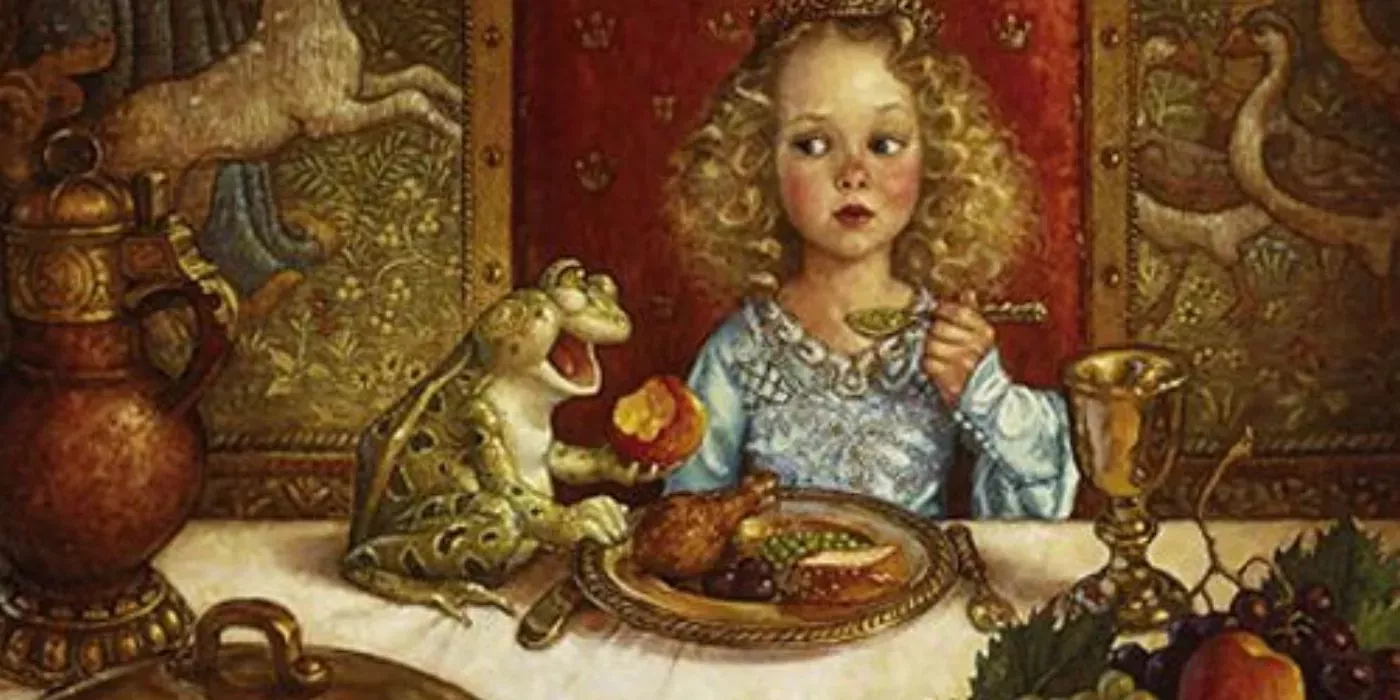Obligada por su padre a cuidar de la rana tras hacer un trato, se enfurece tanto que la arroja contra la pared. Sólo entonces la rana se convierte en rey (o príncipe) y le dice que van a casarse. Aunque obviamente hay algunos aspectos problemáticos del original, esta historia se presta más a la fantasía oscura que a una historia de amor infantil.
