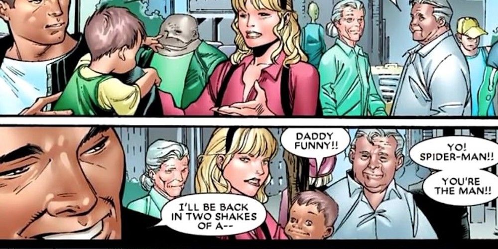 8 Peter Parker está casado con Gwen Stacy y tiene un hijo