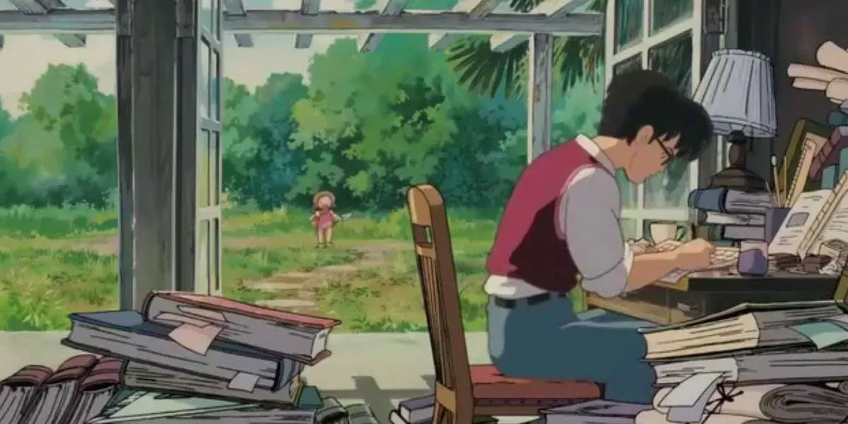 Parece que esto no tiene sentido, pero hay un tema que ha sido obvio desde el principio. El padre de Mei y Satsuki está muy metido en su trabajo y en sus preocupaciones. Profundizando aún más, es muy probable que pasara toda su vida en la ciudad, consumido por la responsabilidad y la lógica. Si tenemos en cuenta lo distraído que estaba desde el principio, no debería sorprendernos que no se diera cuenta de que sus hijos bailaban con los espíritus del bosque alrededor de un enorme árbol que crecía justo delante de su ventana.