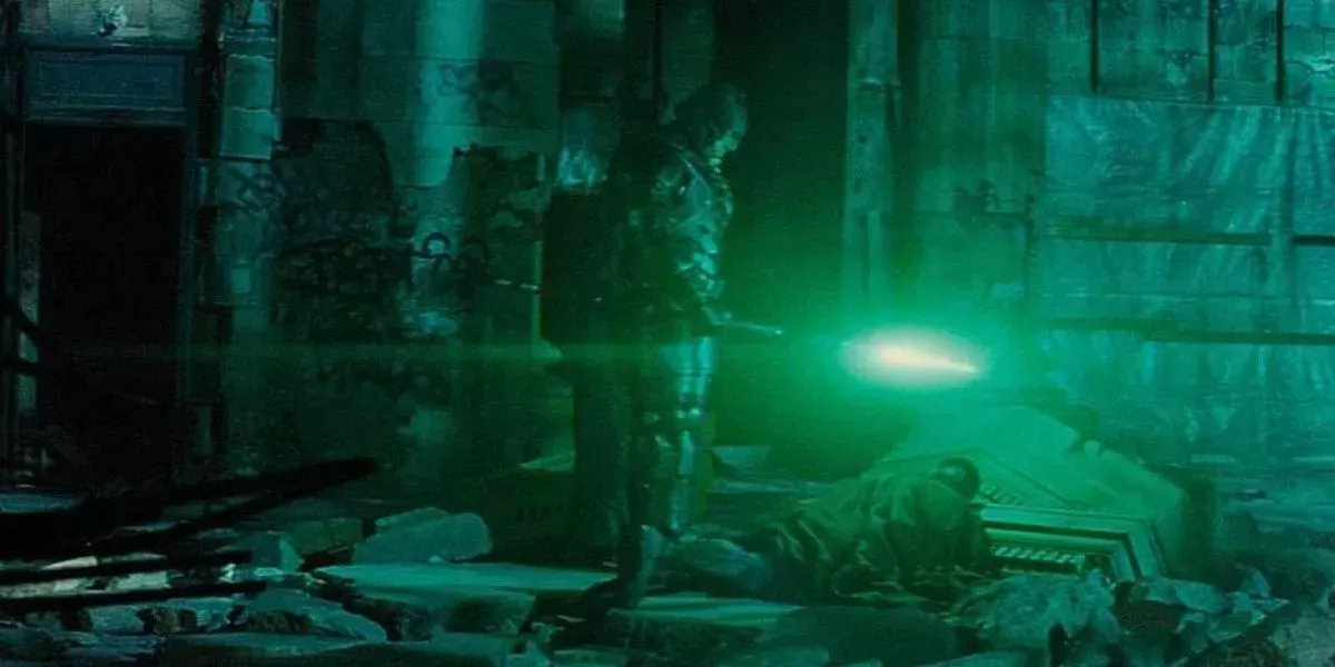 Aunque algunos detalles son un poco diferentes, la armadura de Batman parece sacada de la página y llevada al mundo real. Se ve muy bien en la pantalla y muchos de sus detalles, hasta la pistola que usa Batman, son del cómic.