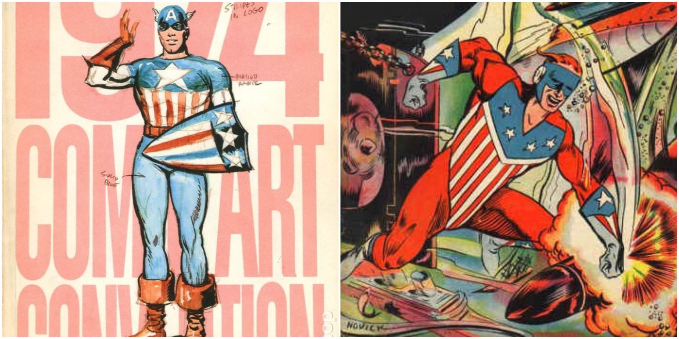 Aunque el Capitán América sea el superhéroe patriótico más famoso, no fue el primero. Ese honor corresponde a The Shield. Debutando en Pep Comics nº 1, The Shield, como su nombre indica, llevaba un escudo en el pecho que estaba pintado para parecerse a la bandera estadounidense. Cuando Jack Kirby y Joe Simon presentaron al mundo al Capitán América 15 meses después, el parecido fue suficiente para que el editor de Pep Comics, MLJ Comics, se pusiera en contacto con Timely Comics y amenazara con demandarlo.