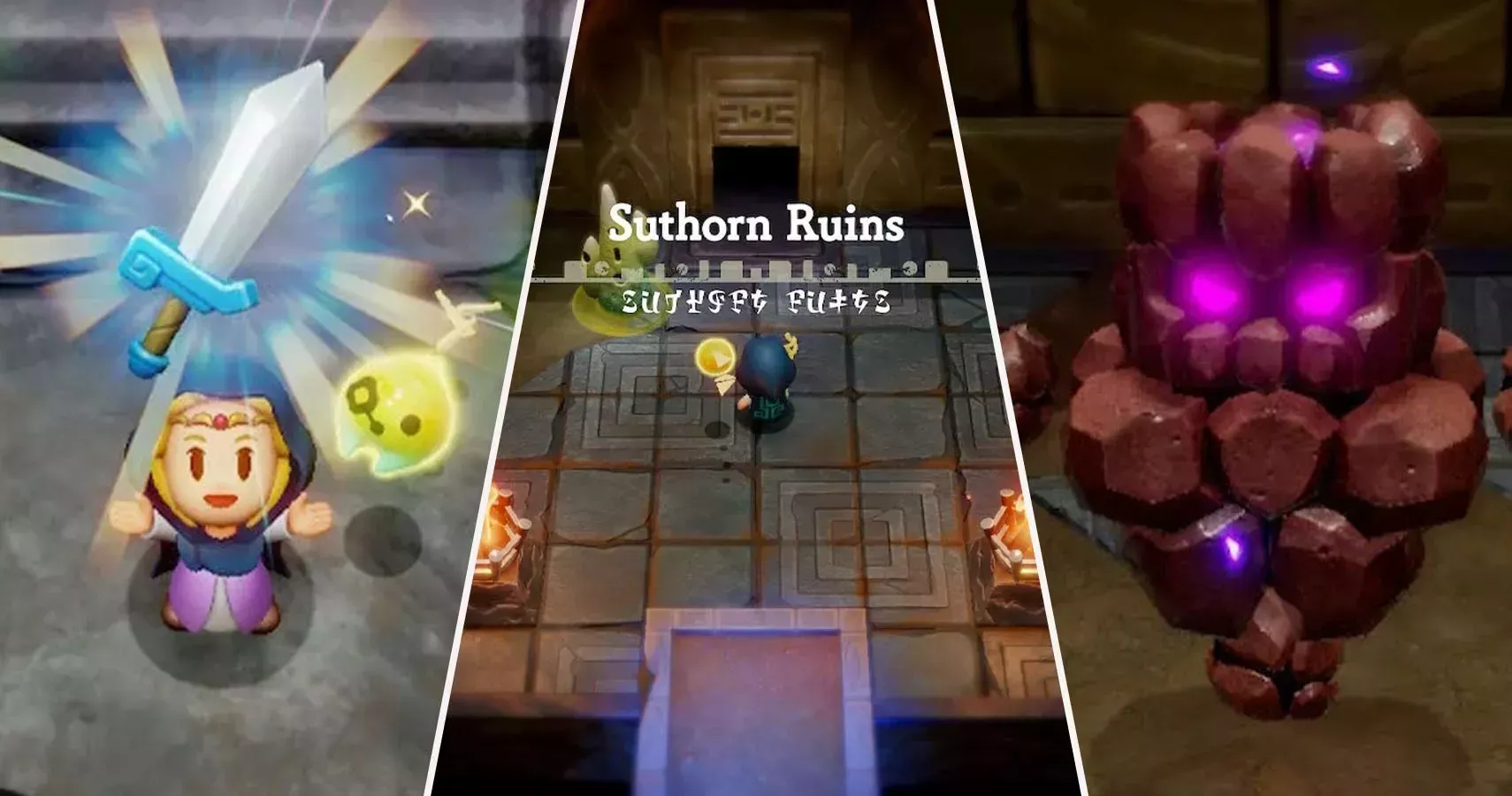 Las Ruinas de Suthorn Las Ruinas de Suthorn es la primera mazmorra de Echoes of Wisdom, y una excelente reintroducción al tipo de mecánicas que hacen especiales a las mazmorras de Zelda.
