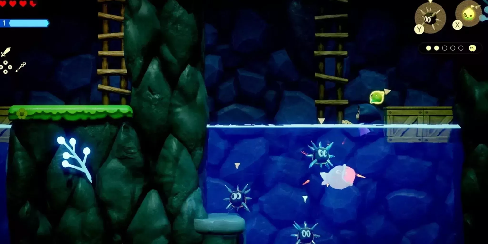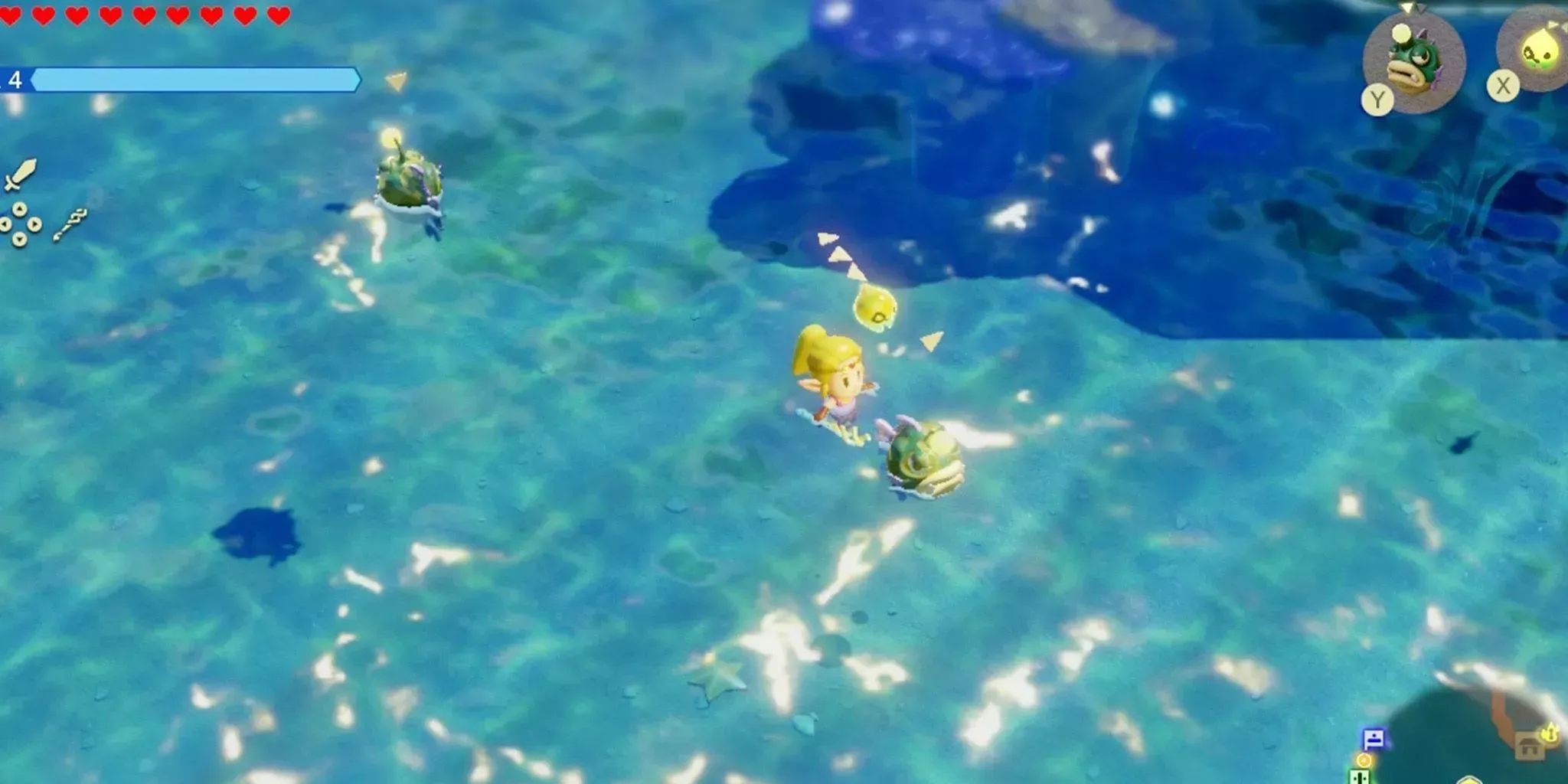 Una cosa que los jugadores aprenderán rápidamente en Echoes of Wisdom es que pasarán mucho tiempo bajo el agua. Dicho esto, el Tangler Lv 2 es el compañero ideal para la exploración submarina. Es tan bueno en el combate submarino como el Tangler de nivel 1, pero además tiene la ventaja de llevar una luz colgando de la cabeza.