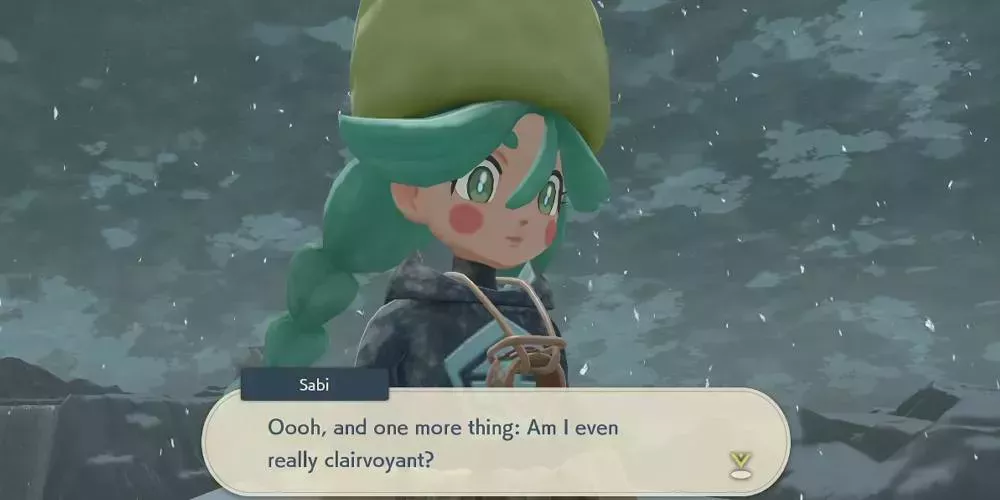 Sabi es toda una bromista, y a menudo afirma ser capaz de ver el futuro, para luego cuestionarse si estaba diciendo la verdad o no. Es una guardiana del Clan Diamante, por lo que alguien con un vínculo tan estrecho con un Pokémon Noble de tipo Psíquico como Hisuian Braviary tendría poderes propios. En la actualización de Daybreak, también rescata a alguien del ataque de un Pokémon alfa tras tener una visión. Tanto Sabi como su compañera Mai, la Guardiana del Clan Diamante, nunca insinúan que no estuviera diciendo la verdad, lo que significa que Sabi probablemente tenga poderes después de todo.