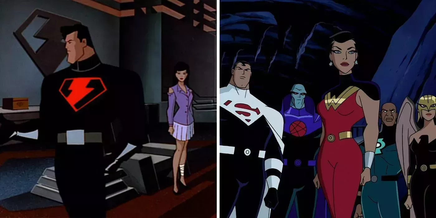 En "Brave New Metropolis" deSuperman: The Animated Series, Lois Lane fue transportada accidentalmente a otro universo en el que Superman gobernaba Metrópolis con Lex Luthor. En "Un mundo mejor" de la Liga de la Justicia, la Liga se convertía en los Señores de la Justicia y gobernaba el mundo con puños de hierro. Ambos episodios exploraban universos alternativos en los que algunas decisiones diferentes llevaban a los héroes a convertirse en villanos.