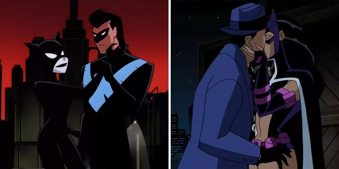 Batman y Catwoman mantuvieron una relación de "quiero y no quiero" durante gran parte de la serie animada original. En Las Nuevas Aventuras de Batman, Gatúbela expresó su interés por Nightwing. Gatúbela pensó que estaba utilizando a Nightwing para conseguir lo que quería, pero en realidad, Nightwing estaba trabajando con Batman para exponer sus crímenes.
