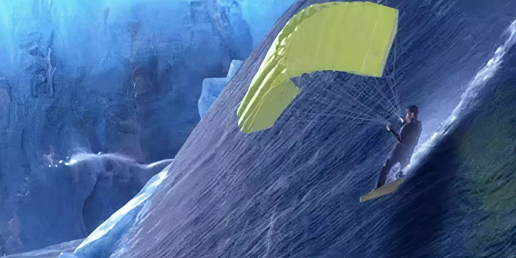 Muere otro díaes una película de Bond, por lo que las escenas de acción épica son un hecho, y se supone que tienen que ser geniales. Por lo tanto, es lógico suponer que una escena en la que James Bond surfea un tsunami sería enfermiza. Sin embargo, en Muere otro día(2002), cuando Bond desciende por una ola helada con un paracaídas amarillo, no es tan impresionante como podría haber sido. Es comprensible que crear un tsunami para que un personaje surfee no sea una opción sencilla, así que el CGI es una vía válida cuando se hace correctamente. Por ejemplo, Escape From L.A., de 1996, incluye una escena en la que el protagonista surfea una gran ola para alcanzar a un coche. Aunque no parece realista, no hay duda de que el agua tiene mejor aspecto.