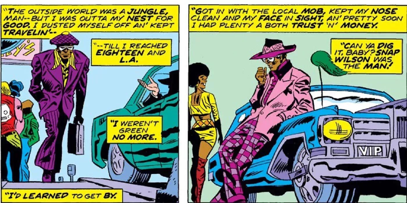 En su lugar, Cráneo utilizó el Cubo Cósmico para crear esa vida para el matón callejero de Harlem Sam "Snap" Wilson con el fin de acercarlo al Capi. En aquella época, Marvel perseguía el mercado del género "blaxploitation", por lo que convertir a Falcon en un estereotipo se consideró lo correcto, pero el asunto envejeció terriblemente. Marvel lo reconfiguró en All-New Captain America , pero definitivamente es algo a lo que no quieren que nadie preste atención.