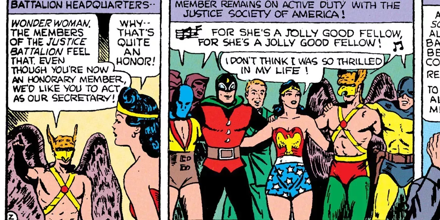 Hoy en día, nadie duda de que la Mujer Maravilla es un héroe temible, pero en su día las cosas eran muy diferentes. A pesar de ser miembro tanto de la Sociedad de la Justicia como de la Liga de la Justicia, estaba relegada a papeles "femeninos" en los equipos, siendo el mayor insulto que era la secretaria en las reuniones del equipo, tomando notas y a menudo quedándose atrás mientras los personajes masculinos salían a salvar el día.