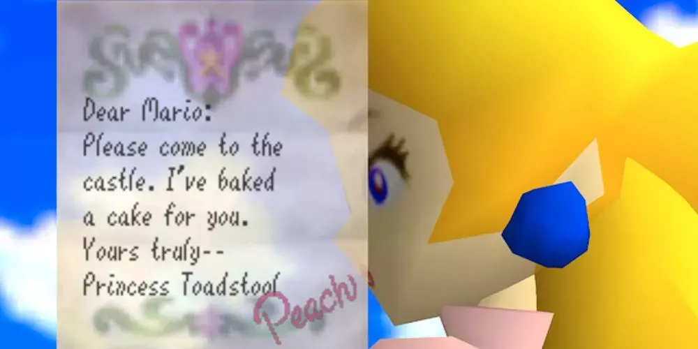 Uno de los primeros detalles a los que se expone el público al comenzar Super Mario 64 es la dulce carta que la princesa Peach envía a Mario, que le invita a su castillo y da el pistoletazo de salida a toda la aventura.