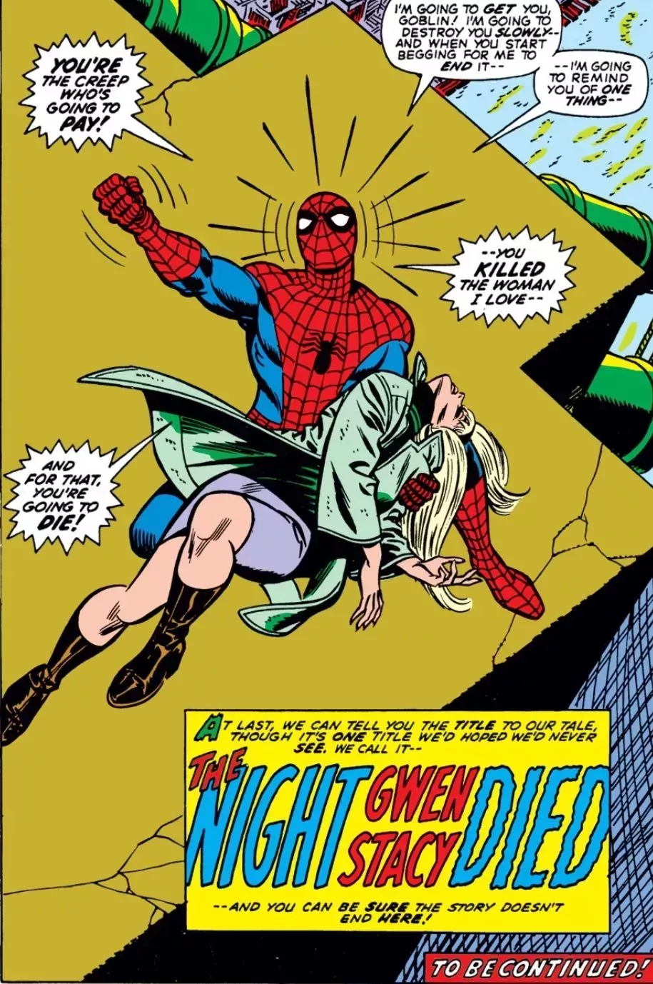 Uno de los momentos más emblemáticos de Spider-Man, The Amazing Spider-Man Vol 1 #121, muestra la trágica muerte de Gwen Stacy, que perseguiría al Lanza Telarañas durante décadas. Abrumado al ver morir al amor de su vida, Peter jura destruir a su mayor enemigo de la forma más atroz imaginable.