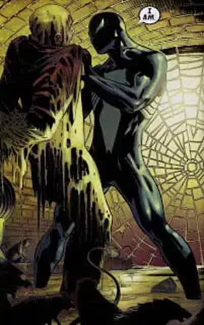El número anterior a la brutal paliza de Spider-Man a Kingpin en Back in Black presenta un momento no muy agradable. Un criminal sale de la inconsciencia y se encuentra atrapado en una telaraña en las alcantarillas, colgando sobre un pozo de ratas voraces. Encaramado en el centro de una telaraña para resaltar su papel de depredador, el lanzarredes explica la cadena alimenticia a su presa.