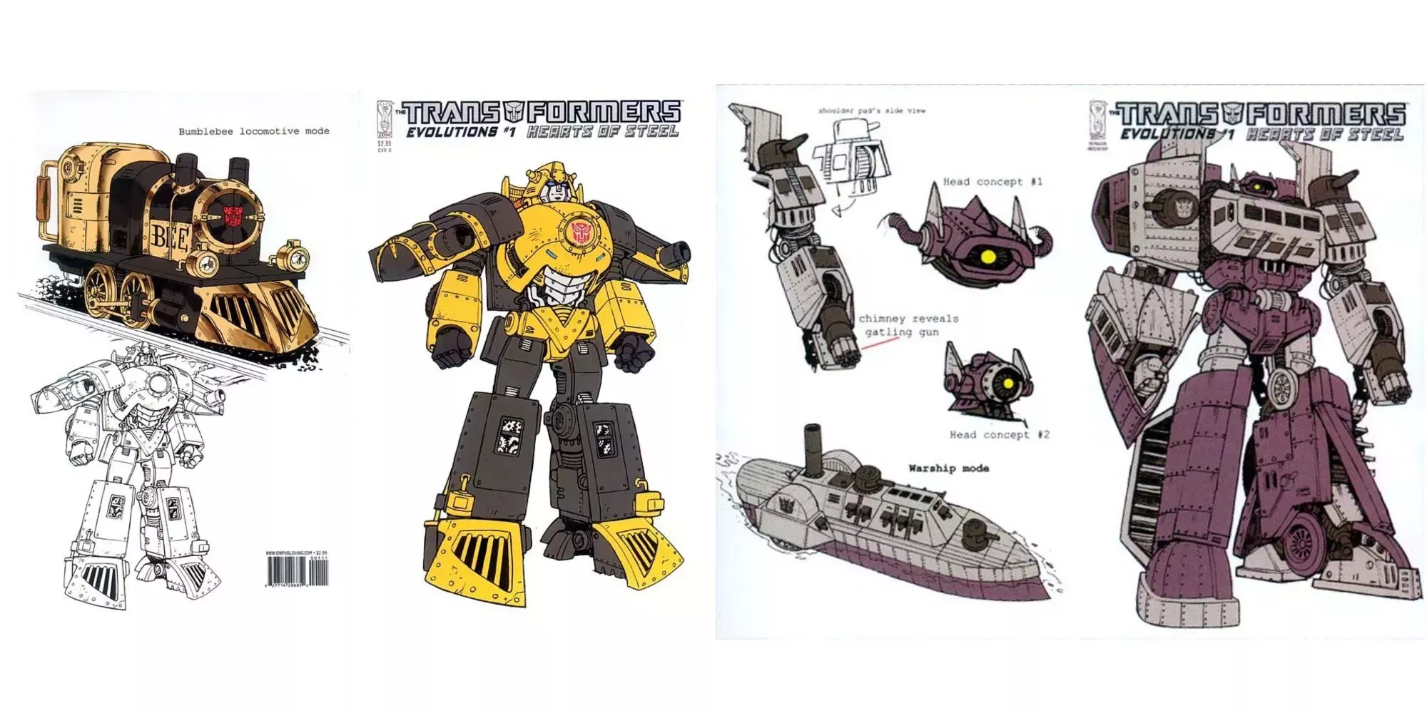 Transformers: Evolutions pretendía ser una nueva serie de historias del universo alternativode Transform ers, similar a What If? de Marvel o a Elseworlds de DC. Sin embargo, Hearts of Steel fue la única historia lanzada, y el estreno de la primera película de Michael Bay hizo que IDW Comics se centrara en las películas de acción real. Sin embargo, la historia, escrita por Chuck Dixon y con arte de Guido Guidi y Jay Fotos, no se olvidó fácilmente.