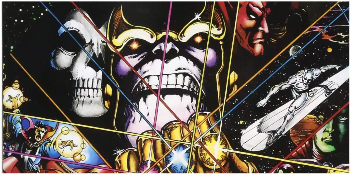 Infinity Gauntlet es un clásico de Marvel. Escrito por Jim Starlin y dibujado por George Pérez y Ron Lim, el libro narraba la batalla entre el Universo Marvel y Thanos. Hasta el final del quinto número, claro. Nébula consiguió quitarle el Guantelete a Thanos, y la historia dio un giro. Seguía haciendo algunas cosas interesantes, especialmente con Thanos, pero había grandes problemas.