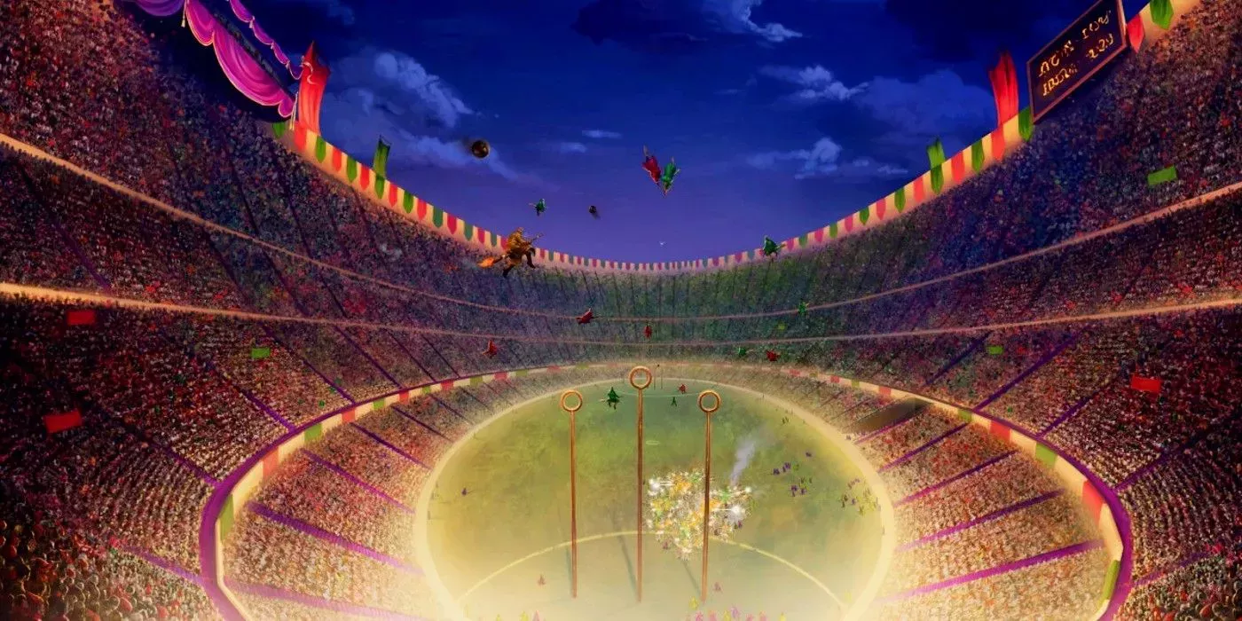 Después de tres libros que giraban principalmente en torno a Hogwarts, El cáliz de fuego lleva a Harry, Hermione y los Weasley al Mundial de Quidditch. Este evento mundial reúne a miles de magos y está lleno de detalles sobre la cultura de los magos. En las películas, esta escena es, según Harry, "el Quidditch como Harry nunca lo había visto jugar".