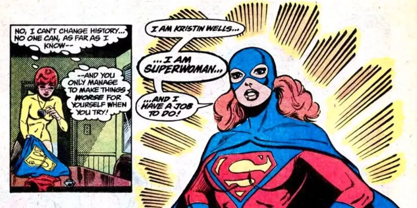 ¡Sin embargo, durante la Edad de Bronce de DC ese puesto lo ocupó Kristin Wells, protagonista de la brillante novela en prosa de Elliot S! Maggin en su brillante novela en prosa Superman: Miracle Monday. Kristin era una historiadora del futuro, especializada en la investigación de Superman, y también descendiente lejana de Jimmy Olsen.